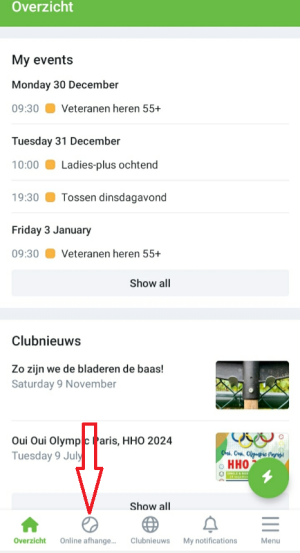 Let op! M.i.v. 1 januari zal de nieuwe versie van de reserveringsmodule "Online afhangen" live gaan binnen de ClubApp.